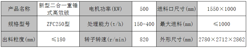 【進(jìn)料粒度】: ≤1000mm 【生產(chǎn)能力】:250-400t/h