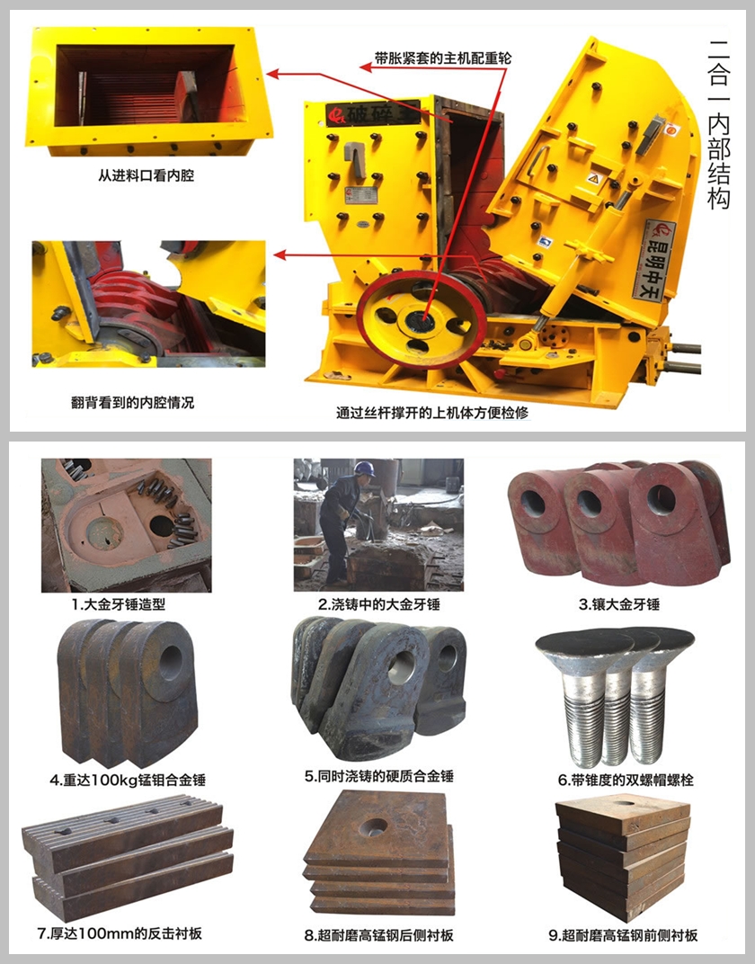 普通石料除錘頭和反擊襯板外,整個使用過程基本不用更換配件(沒有比二合一更省配件的破碎設備)。