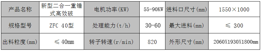 ZFC40型新型高效節(jié)能型二合一破碎機(jī)術(shù)參數(shù):