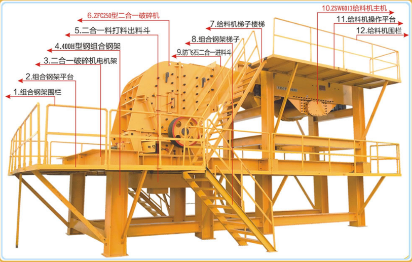 由輥?zhàn)印?軸承、 彈簧、機(jī)架等組成。輥?zhàn)佑泄饷婧妄X面兩種。兩個(gè)輥?zhàn)幼飨嘞蜣D(zhuǎn)動(dòng),將物料咬入。光面輥?zhàn)訉⑽锪蠑D壓、碾壓,進(jìn)行破碎。齒面輥?zhàn)訉⑽锪吓选澢?,進(jìn)行破碎。其中一個(gè)輥?zhàn)涌梢苿?dòng),當(dāng)大塊或硬質(zhì)物料落入破碎機(jī)而又不能將之破碎時(shí),輥?zhàn)涌煽朔椈闪Χ苿?dòng)使硬物排出,從而防止機(jī)件損壞。主要技術(shù)參數(shù)為輥?zhàn)映叽?。適于抗壓強(qiáng)度不大、脆性、中硬和軟礦石的中碎和細(xì)碎機(jī)。