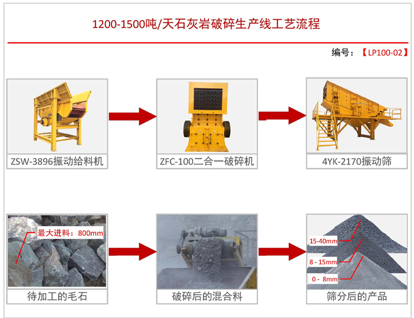 圓錐破碎機(jī) 一種適用于冶金、建筑、筑路、化學(xué)及硅酸鹽行業(yè)中原料的破碎機(jī)械。根據(jù)破碎原理的不同和產(chǎn)品顆粒大小不同,又分為很多型號(hào)。破碎機(jī)廣泛運(yùn)用于礦山、冶煉、建材、公路、鐵路、水利和化學(xué)工業(yè)等眾多部門。圓錐破碎機(jī)破碎比大、效率高、能耗低,產(chǎn)品粒度均勻,適合中碎和細(xì)碎各種礦石,巖石。機(jī)型主要分為SMG系列、彈簧型和HPC系列。圓錐破配件比較多,后期維護(hù)成本較高。設(shè)備投資也比較高,不是必備,一般不建議使用。下面給大家分享一個(gè)日產(chǎn)1200-1500噸的生產(chǎn)線配置方案