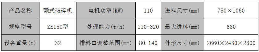 ZE150型超級(jí)顎式破碎機(jī)產(chǎn)品技術(shù)參數(shù):