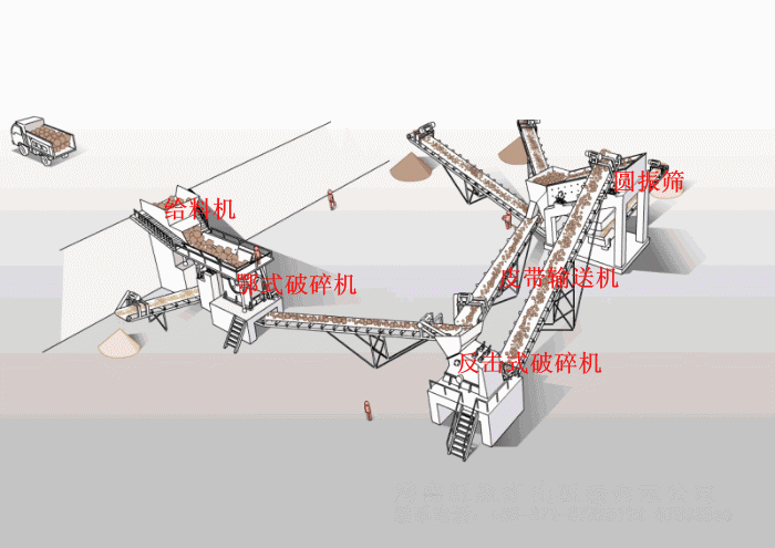 2、可作二破用,大型顎破選配小型二合一破碎機(jī),作新型反擊破用。