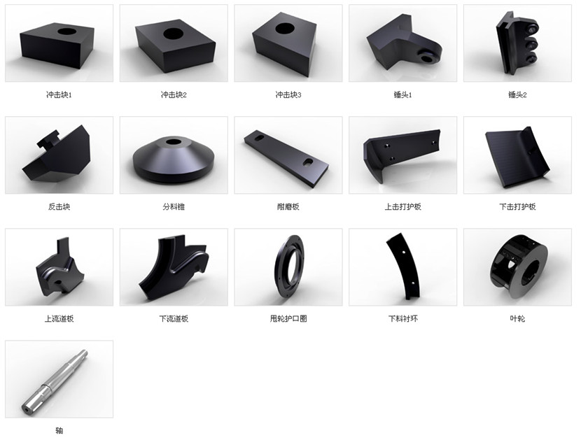顎式破碎機(jī)配件、反擊破碎機(jī)配件、錘式破碎機(jī)配件、圓錐破碎機(jī)配件,制砂機(jī)配件等與同類產(chǎn)品比耐磨性能提高2-3倍。